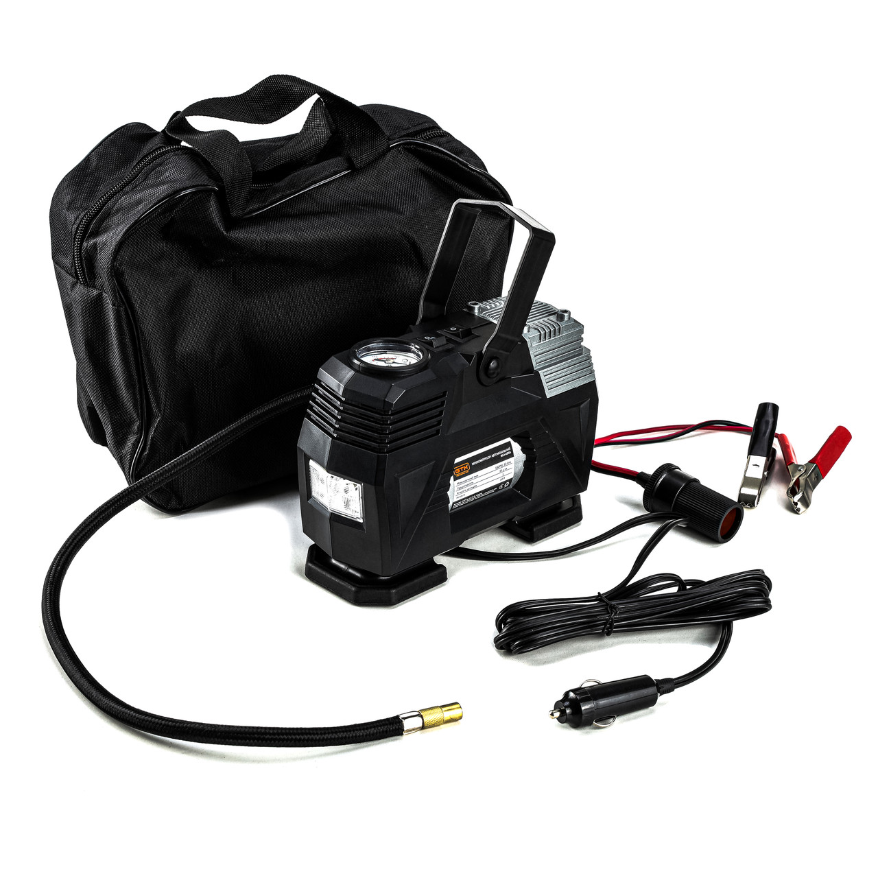 GTM RLA-0201 - компактний і легкий компресор, що призначений для накачування коліс легкових автомобілів, позашляховиків і навіть мікроавтобусів. Це мобільний високопродуктивний компресор без ресивера. Він працює від мережі постійного струму з напругою 12 В. Компресор можна підключати до прикурювача або через спеціальний перехідник безпосередньо до клем акумулятора. При роботі компресор видає 35 л/хв з робочим тиском до 6,9 бар. Компресор поставляється в сумці з набором аксесуарів для повноцінної роботи.